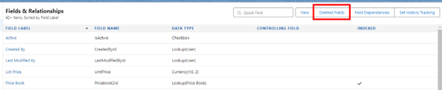 5. Click on “Deleted Fields”;